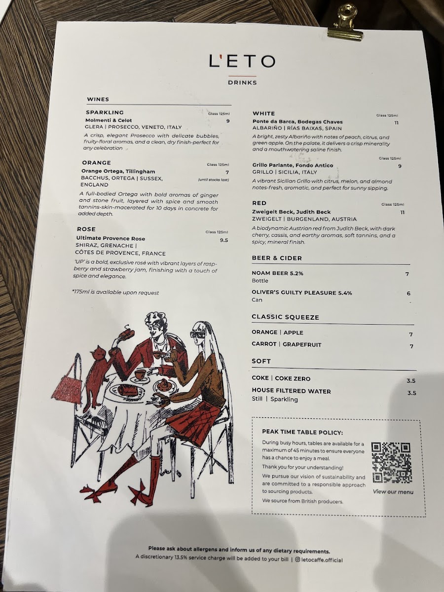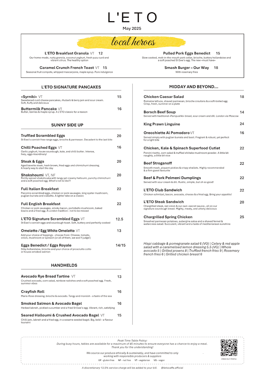 The menu at L'ETO Soho offers a balanced blend of café classics and refined bistro-style dishes, perfect for relaxed moments throughout the day. From light, fresh handhelds like avocado rye bread tartines and crayfish rolls to more substantial options such as king prawn linguine or a full English breakfast, the choices support a casual yet thoughtful dining experience.