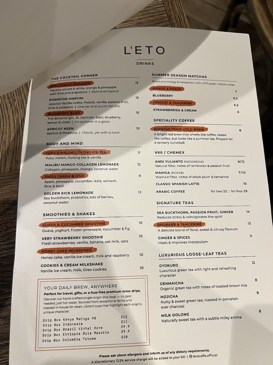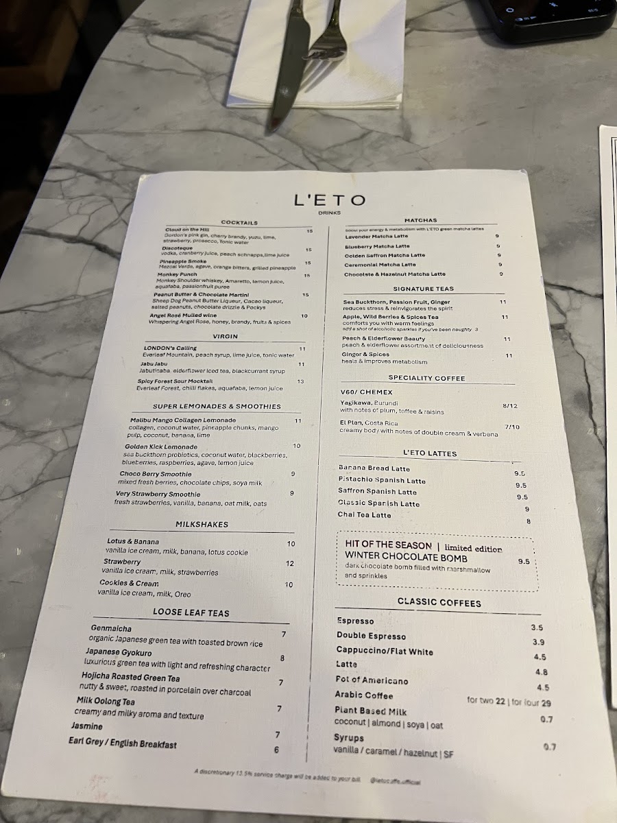 The drinks menu complements the food with carefully prepared coffee, fresh juices, and seasonal specialties that encourage a sense of calm and enjoyment. L’ETO’s focus on quality and variety allows visitors to find something to suit different tastes and times of day, making it easy to linger and savor the atmosphere.